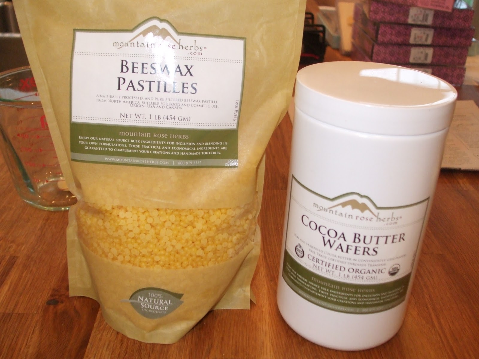 - Place Olive Oil (best price on organic I have found is at Costco), sesame oil, beeswax and cocoa butter in a Pyrex measuring cup. Then take a medium size saucepan and place the Pyrex measuring cup in it or oils without the pyrex but you must watch closer. Put water around the Pyrex measuring cup. With the burner on the lowest setting (do not allow mixture to boil or bubble) allow the oils to melt.
